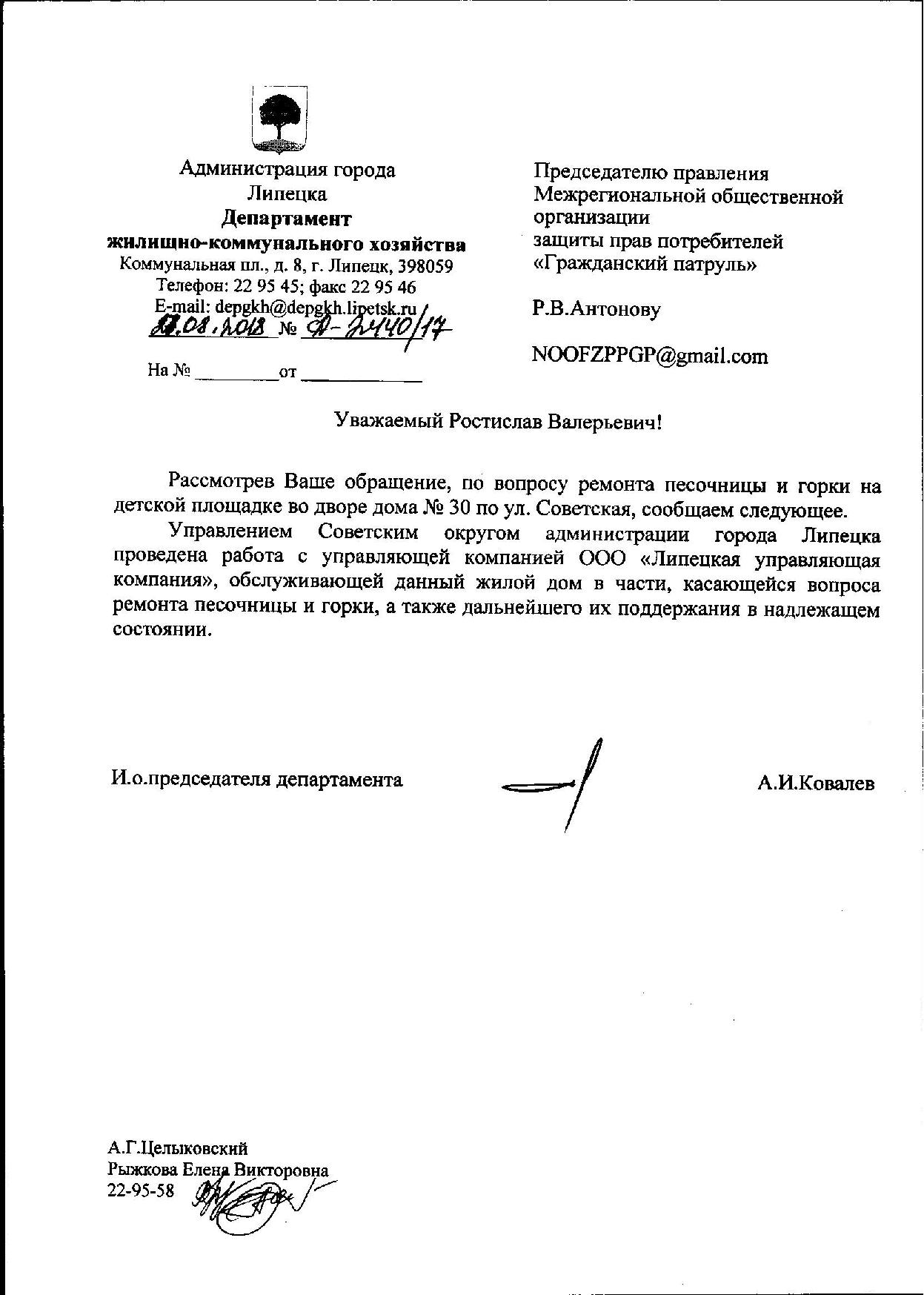 Номер жалобы:39590 Тип жалобы:Иные проблемы ЖКХ Название объекта:Ук Регион:Липецкая область Город:Липецк Адрес:ул. Советская, 30 Описание жалобы:Разрушена песочница и сломаны ступеньки на горке Статус: