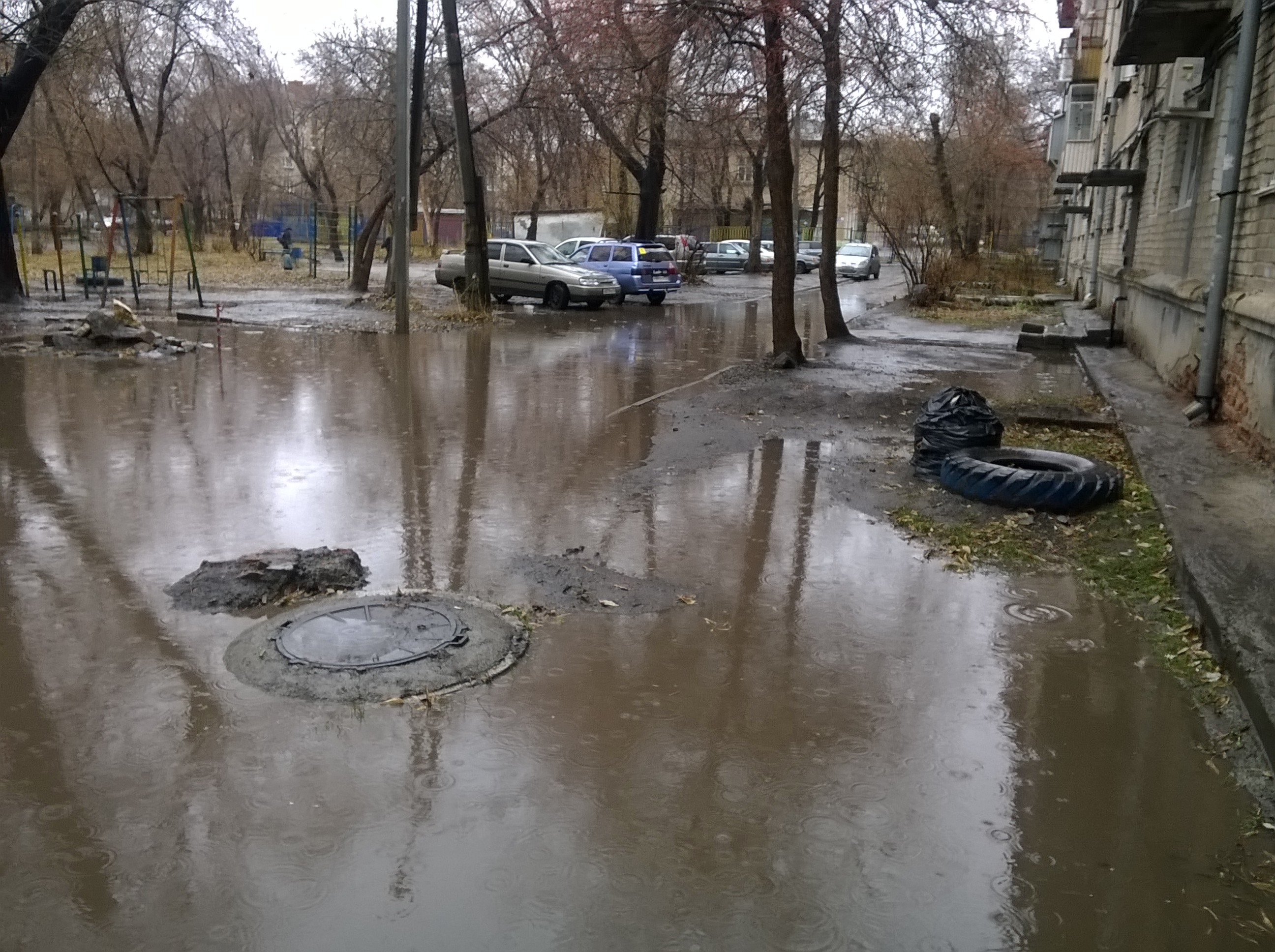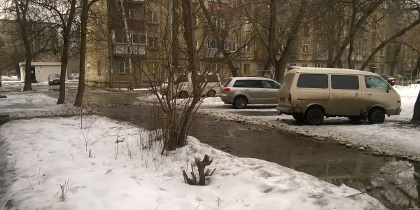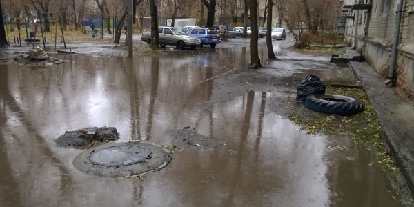 Проблема существует уже не первый год. Вижу два решения по ее устранению: 1. сделать ливнесток, который будет уходить прямиком в канализацию. 2. сделать пешеходную дорожку вдоль дома, приподняв ее уровень. Статус: