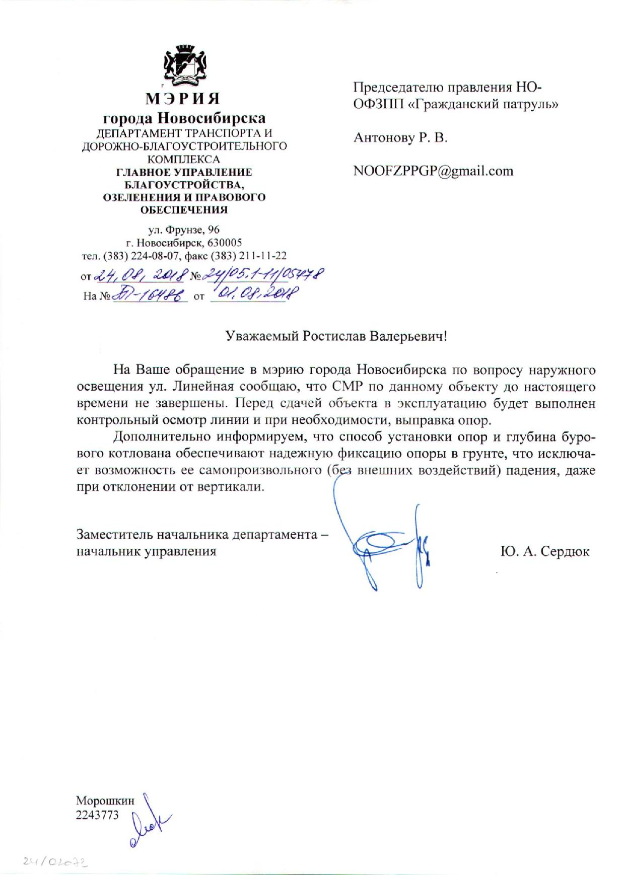 Номер жалобы:39399 Тип жалобы:Иные проблемы ЖКХ Название объекта:МКУ ГОРСВЕТ Регион:Новосибирская область Город:Новосибирск Адрес:ул. Линейная, 33 Описание жалобы:Вдоль улицы Линейная проходила установка столбов уличного освещения. Наблюдая за установкой столбов возникают вопросы к качеству проведённых работ, а именно к устойчивости конструкций. Некоторые столбы установлены не вертикально, качаются от порывов ветра. Так как вдоль улицы Линейная паркуются автомобили есть вероятность падения столбов на них. Прошу проверить данный факт и исправить некачественно выполненные работы. Статус: