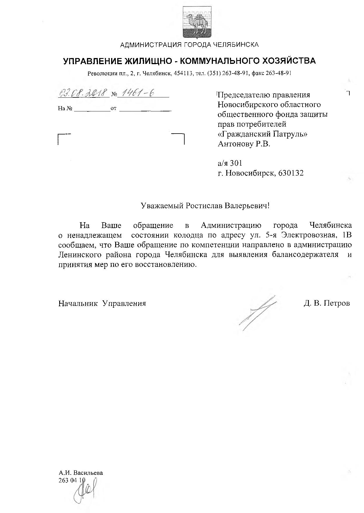 Номер жалобы:38585 Тип жалобы:Иные проблемы ЖКХ Название объекта:Администрация Ленинского Района Регион:Челябинская область Город:Челябинск Адрес:ул. 5-я Электровозная, 1В Описание жалобы:1461-6 На выезде с парковки напротив 5й Электровозной 1В находится открытый канализационный люк, забитый мусором и досками. Рядом частично разрушена бетонная стенка мусорной площадки. Статус: