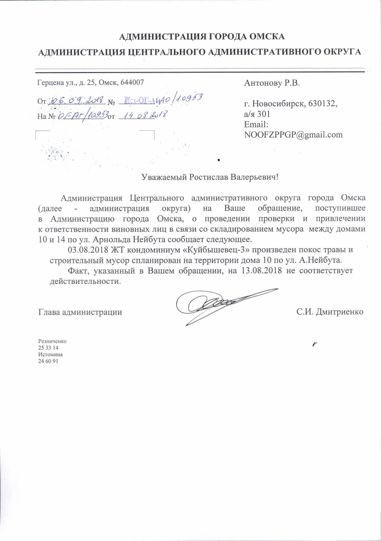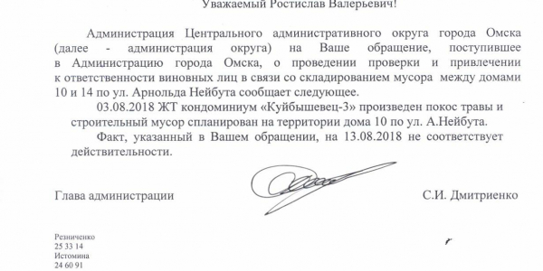 Номер жалобы:38595 Тип жалобы:Иные проблемы ЖКХ Название объекта:Жкх Регион:Омская область Город:Омск Адрес:ул. Нейбута, 10 Описание жалобы:Трава и мусор (между домами 10 и 14 по ул. Арнольда Нейбута) Статус: