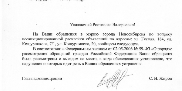 Номер жалобы:38407 Тип жалобы:Иные проблемы ЖКХ Название объекта:Управляющая Компания Регион:Новосибирская область Город:Новосибирск Адрес:ул. Гоголя, 184 Описание жалобы:Объявления на фасаде дома Статус: