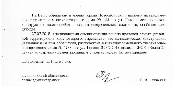 Номер жалобы:38412 Тип жалобы:Иные проблемы ЖКХ Название объекта:Управляющая Компания Регион:Новосибирская область Город:Новосибирск Адрес:ул. Гоголя, 186 Описание жалобы:Объявления на хоз корпусе Статус: