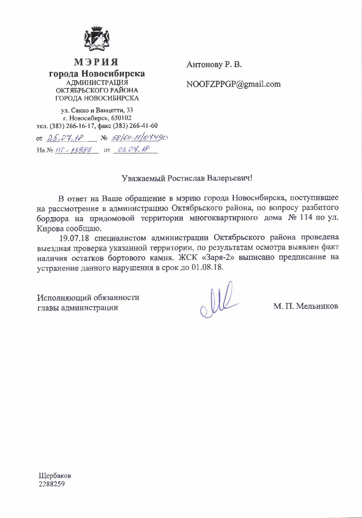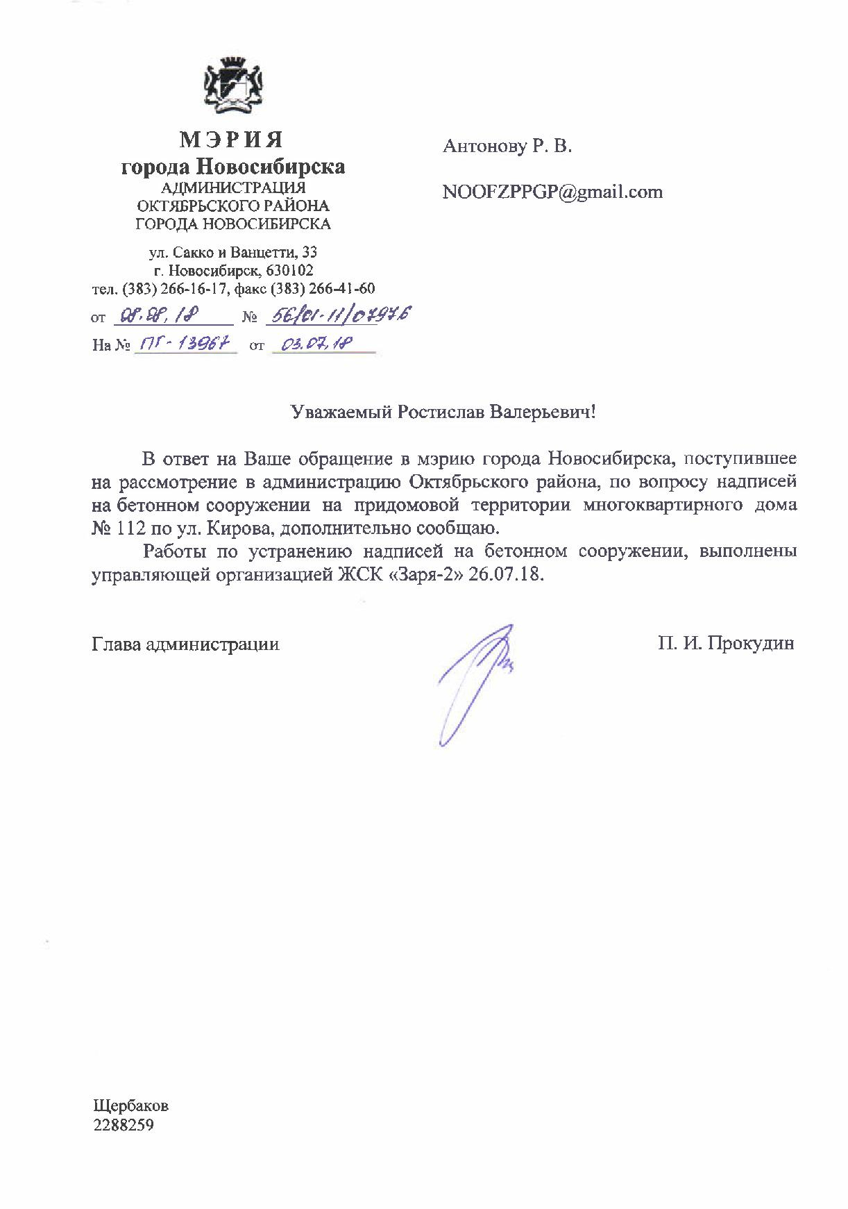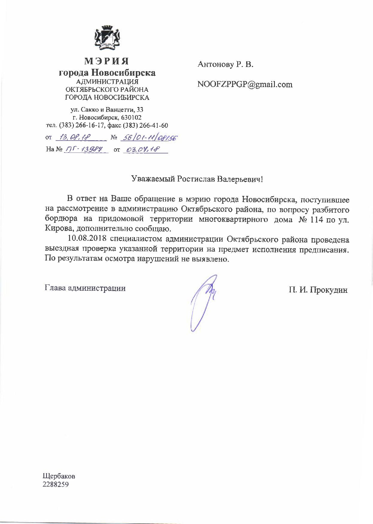 Номер жалобы:37729 Тип жалобы:Иные проблемы ЖКХ Название объекта:Управляющая Компания Регион:Новосибирская область Город:Новосибирск Адрес:ул. Кирова, 110 Описание жалобы:Надписи на заборе Статус: