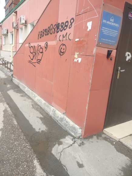 Номер жалобы:37708 Тип жалобы:Иные проблемы ЖКХ Название объекта:Управляющая Компания Регион:Новосибирская область Город:Новосибирск Адрес:ул. Кирова, 108/1 Описание жалобы:Надписи на хозяйственном корпусе Статус: