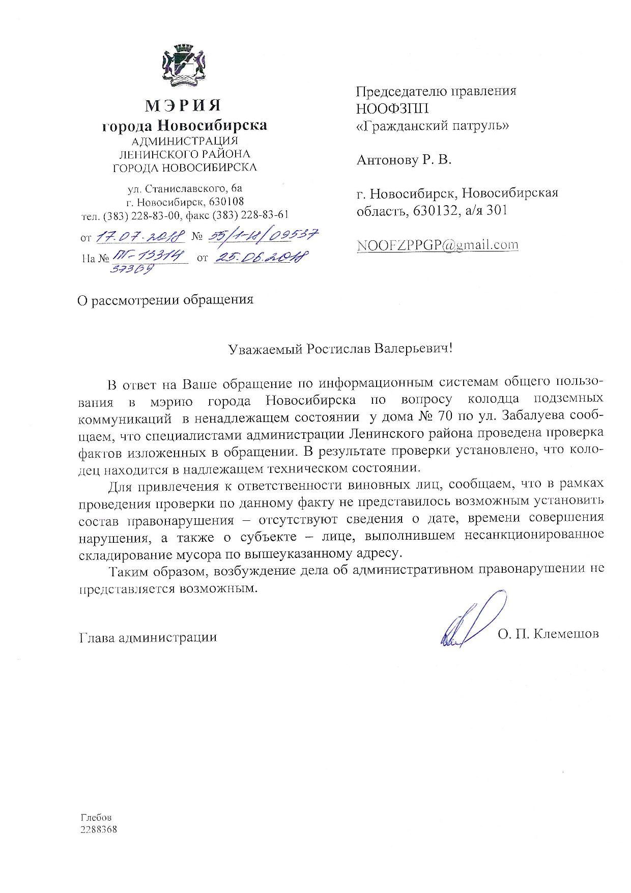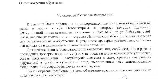 Номер жалобы:37369 Тип жалобы:Иные проблемы ЖКХ Название объекта:Управляющая Компания Город:Новосибирск Адрес:Новосибирск, улица Забалуева, 70 Описание жалобы:Комментарий Статус: