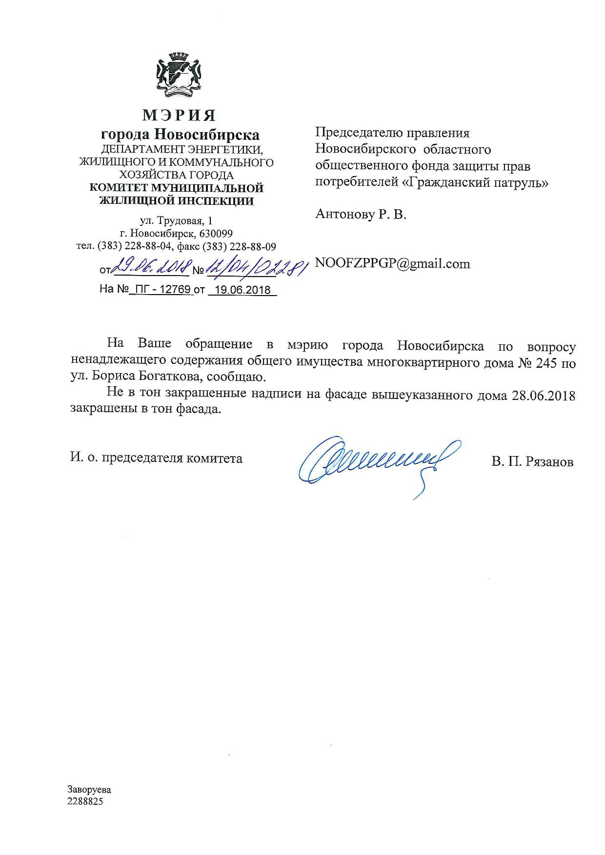 Номер жалобы:36054 Тип жалобы:Иные проблемы ЖКХ Название объекта:Управляющая Компания Регион:Новосибирская область Город:Новосибирск Адрес:ул. Бориса Богаткова, 245 Описание жалобы:Надписи закрашены не в тон Статус: