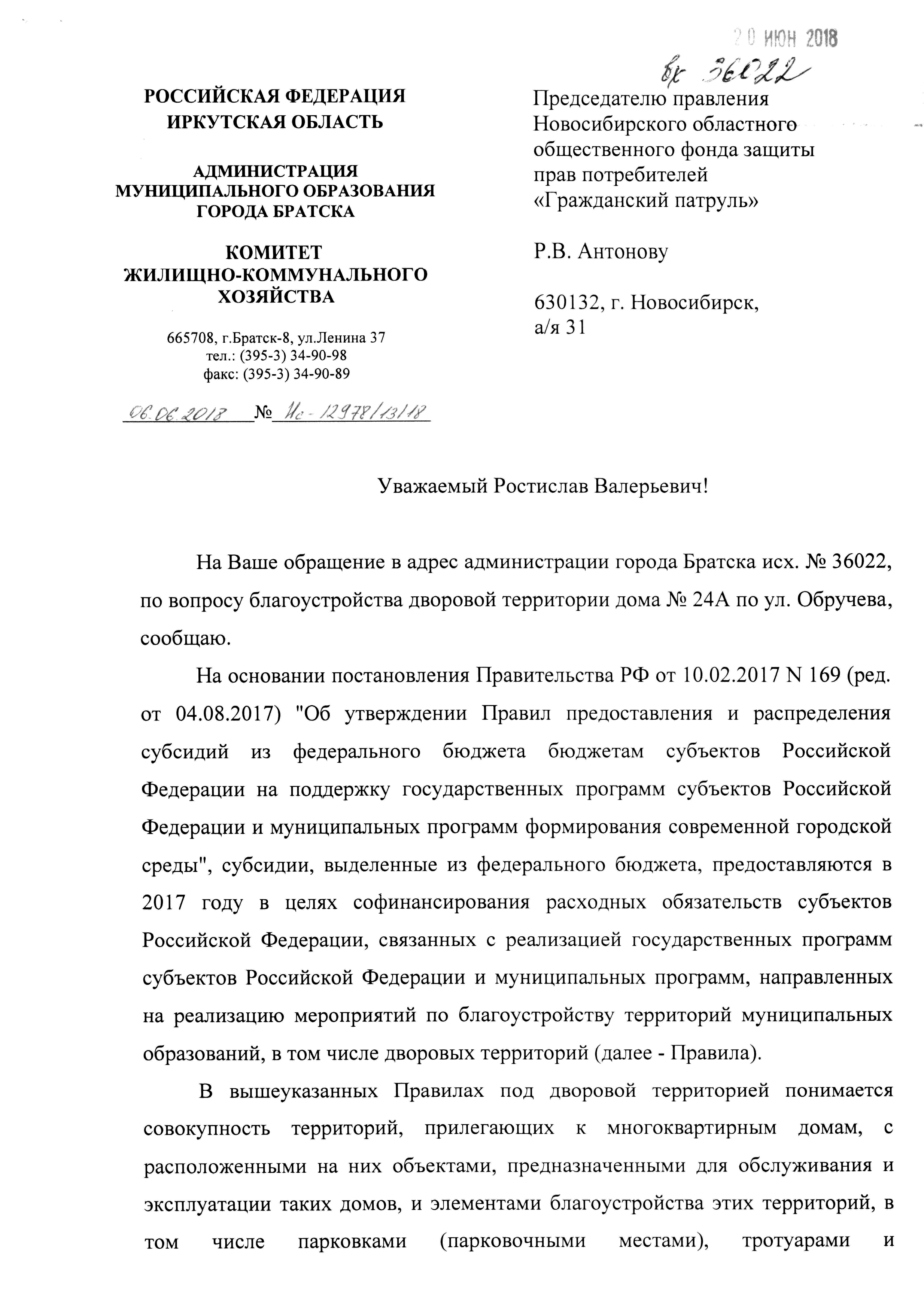 Номер жалобы:36022 Тип жалобы:Иные проблемы ЖКХ Название объекта: Регион:Иркутская область Город:Братск Адрес:Обручева 24а Описание жалобы:При реализации программы "Формирование комфортной городской среды" ремонтировали тротуар и лестницы в подъезд. При этом пандус не был устроен, местами высокие лестницы Статус: