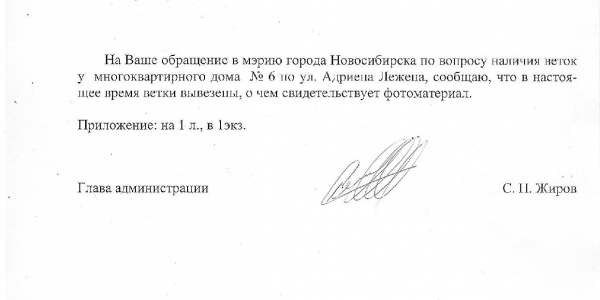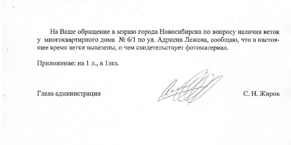 Номер жалобы:35943 Тип жалобы:Иные проблемы ЖКХ Название объекта:Управляющая Компания Регион:Новосибирская область Город:Новосибирск Адрес:ул. Адриена Лежена, 6/1 Описание жалобы:Ветки рядом с домом Статус: