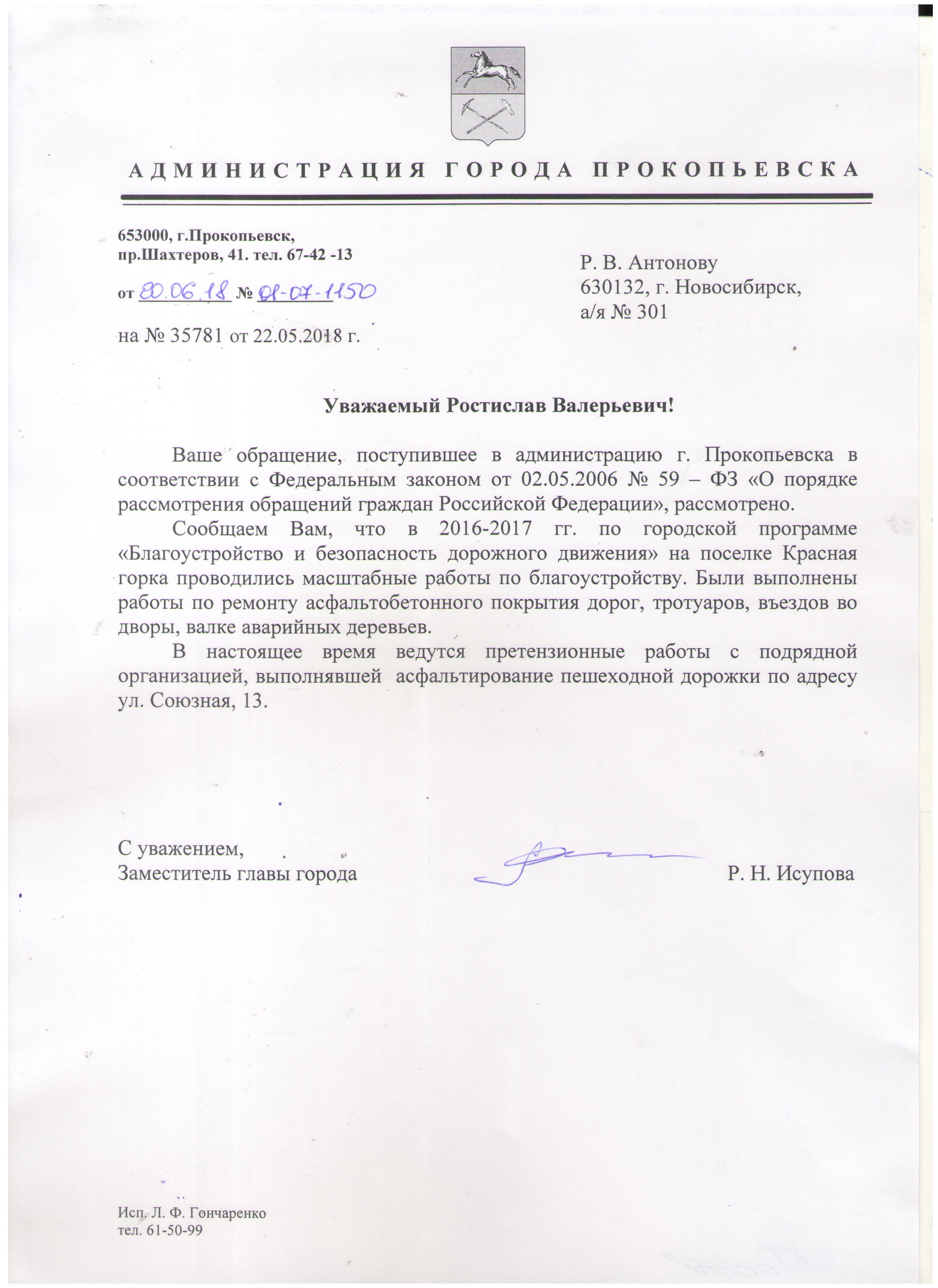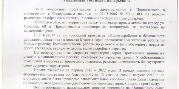 Номер жалобы:35769 Тип жалобы:Иные проблемы ЖКХ Название объекта:7 Регион:Кемеровская область Город:Прокопьевск Адрес:Союзная улица, 68 Описание жалобы:Между 68 домом и Транспортным техникумом находится большая лужа, часть которой засыпали летом 2017г. Часть лужи заходит на тротуар Статус:
