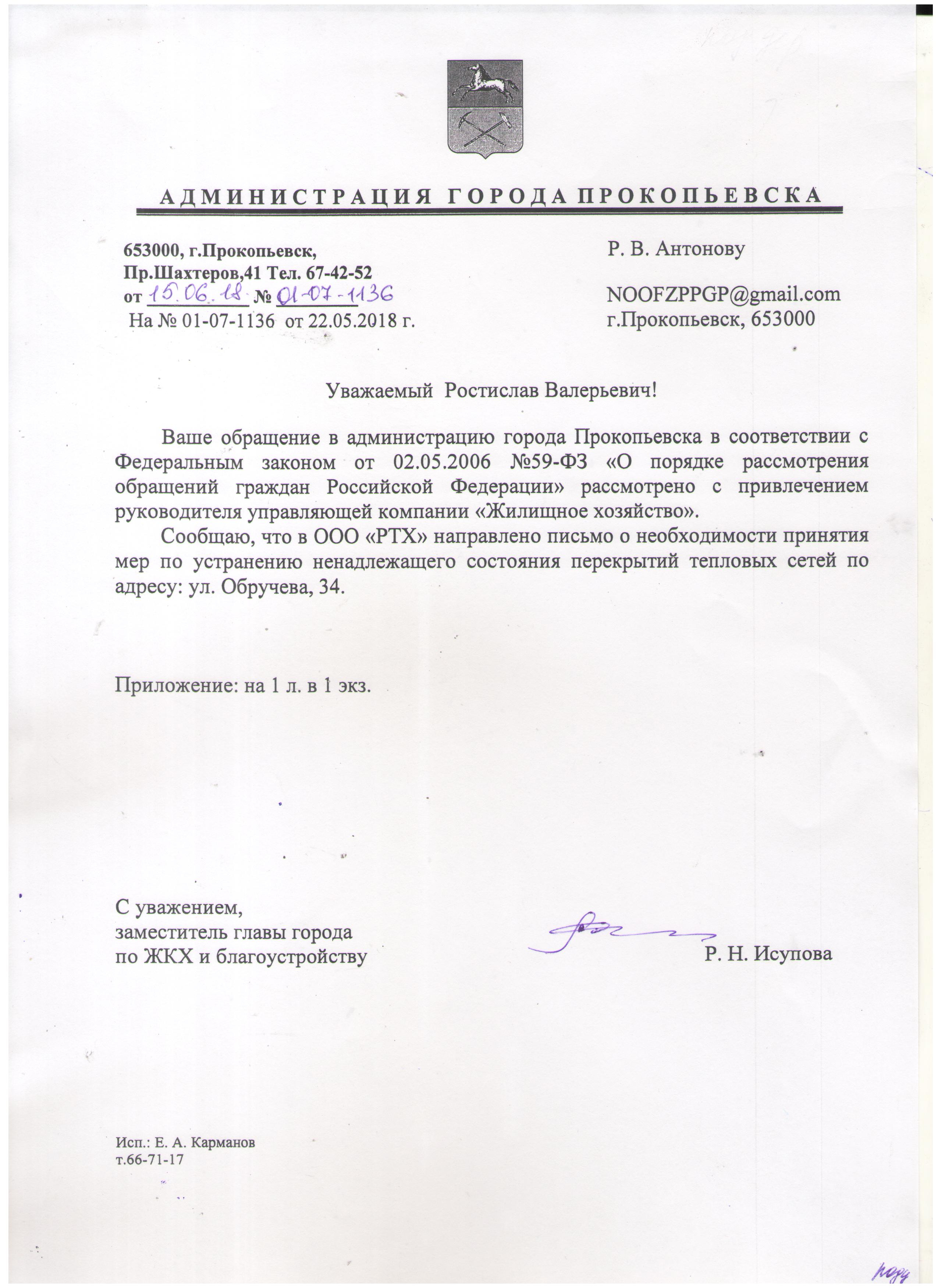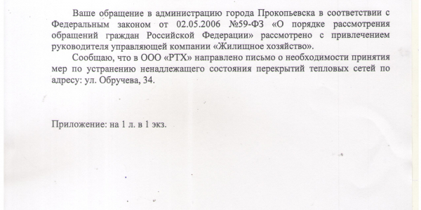 Номер жалобы:35562 Тип жалобы:Иные проблемы ЖКХ Название объекта:Рудничное Тепловое Хозяйство Регион:Кемеровская область Город:Прокопьевск Адрес:ул. Обручева, 34 Описание жалобы:На детской игровой площадке перекрытие тепловых сетей в аварийном состоянии. После неоднократного обращения в РТХ г.Прокопьевска- бездействие.