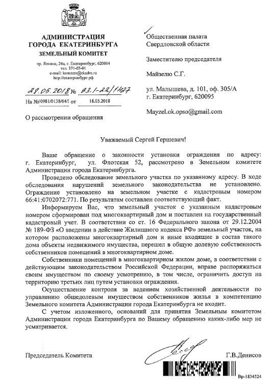 Номер жалобы:35389 Тип жалобы:Иные проблемы ЖКХ Название объекта:Екатеринбург Город:Екатеринбург Адрес:Екатеринбург, Флотская улица, 52 Описание жалобы:Незаконный отъем территории Статус: