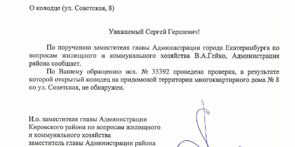 Номер жалобы:35392 Тип жалобы:Иные проблемы ЖКХ Название объекта:Г. Екатеринбург Регион:Свердловская область Город:Екатеринбург Адрес:ул. Советская, 8 Описание жалобы:отсутсвует люк колодца, сам колодец прикрыт фанерой и покрышкой Статус: