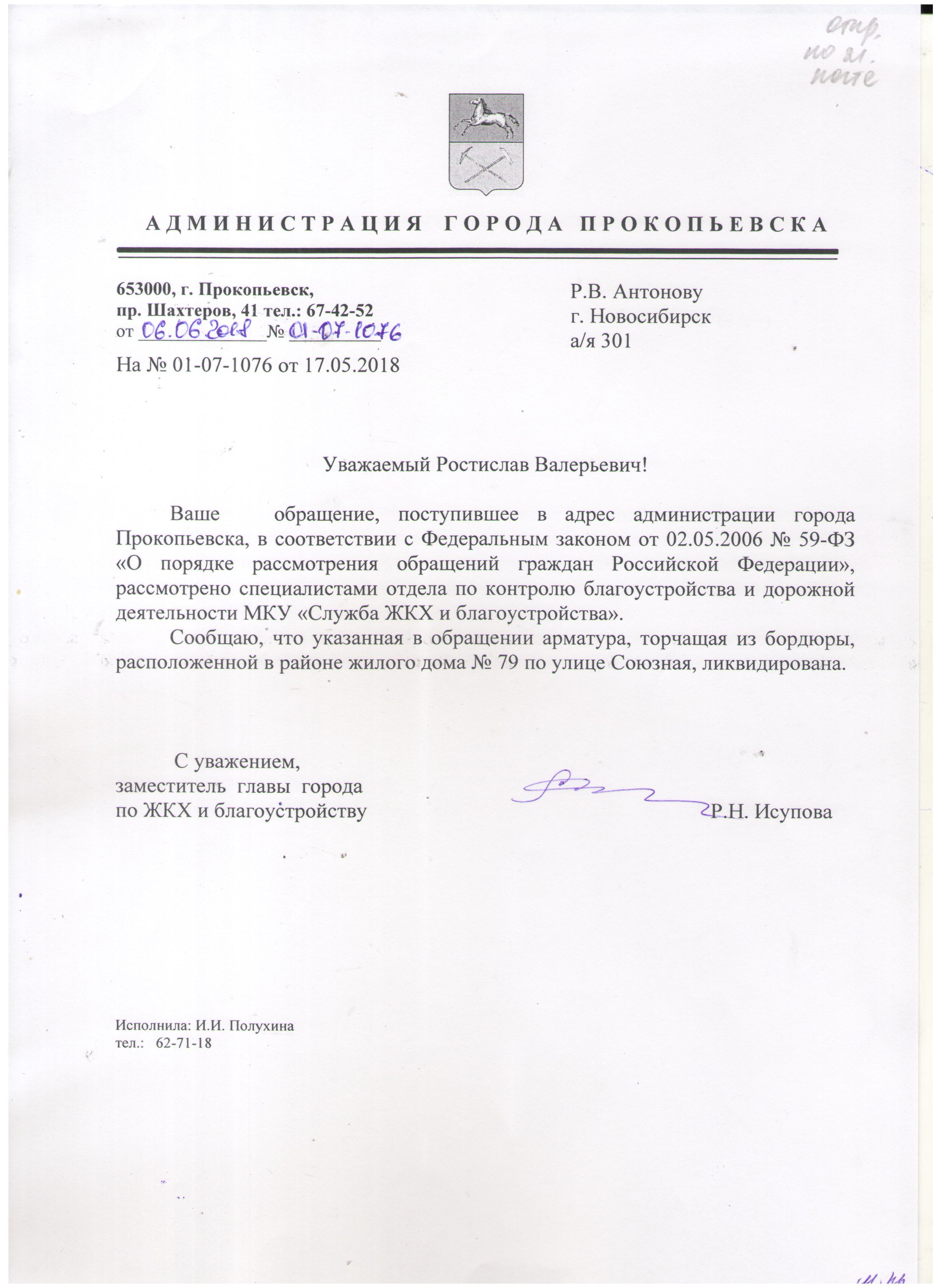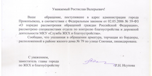Номер жалобы:34927 Тип жалобы:Иные проблемы ЖКХ Название объекта:7 Регион:Кемеровская область Город:Прокопьевск Адрес:ул. Союзная, 79 Описание жалобы:Повтор жалобы 32508. В ответе сказано что срезали арматуру, а по факту нет. Статус: