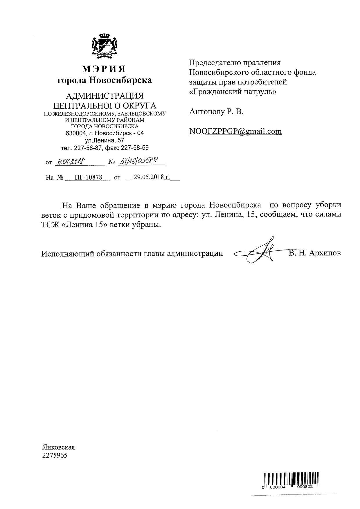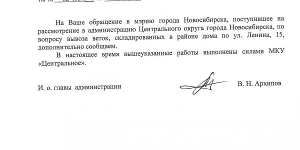 Номер жалобы:34760 Тип жалобы:Иные проблемы ЖКХ Название объекта:Управляющая Компания Регион:Новосибирская область Город:Новосибирск Адрес:ул. Ленина, 15 Описание жалобы:Ветки за домом не убраны Статус: