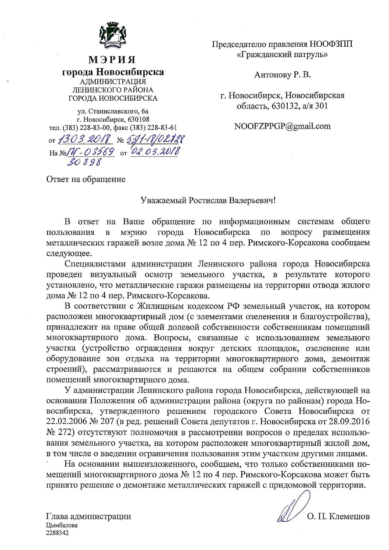 Номер жалобы:30896 Тип жалобы:Иные проблемы ЖКХ Название объекта:Управляющая Компания Город:Новосибирск Адрес:Новосибирск, 4-й Римского-Корсакова переулок, 10 Описание жалобы:Гаражи Статус:
