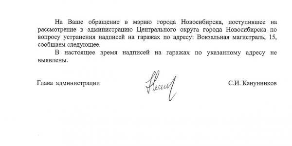 Номер жалобы:30744 Тип жалобы:Иные проблемы ЖКХ Название объекта:Управляющая Компания Регион:Новосибирская область Город:Новосибирск Адрес:ул. Вокзальная Магистраль, 15 Описание жалобы:Надписи на корпусах Статус: