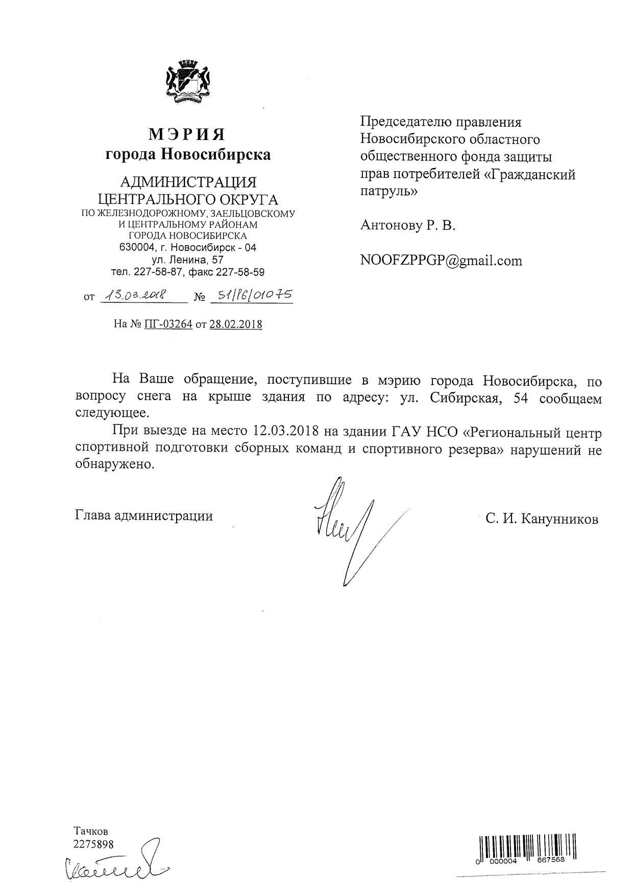 Номер жалобы:30718 Тип жалобы:Иные проблемы ЖКХ Название объекта:Управляющая Компания Регион:Новосибирская область Город:Новосибирск Адрес:ул. Советская, 77А Описание жалобы:Снег на крыше дома Статус: