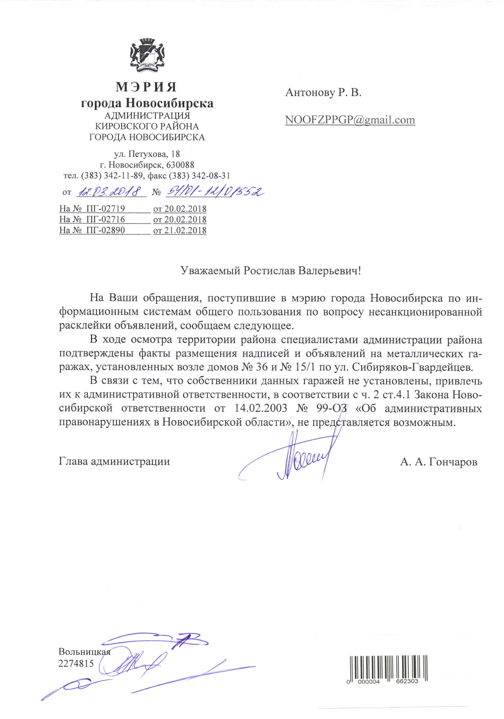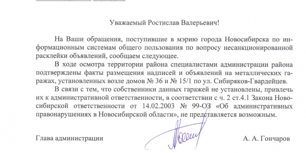 Номер жалобы:30556 Тип жалобы:Иные проблемы ЖКХ Название объекта:Управляющая Компания Город:Новосибирск Адрес:Новосибирск, улица Сибиряков-Гвардейцев, 38 Описание жалобы:Гаражи Статус: