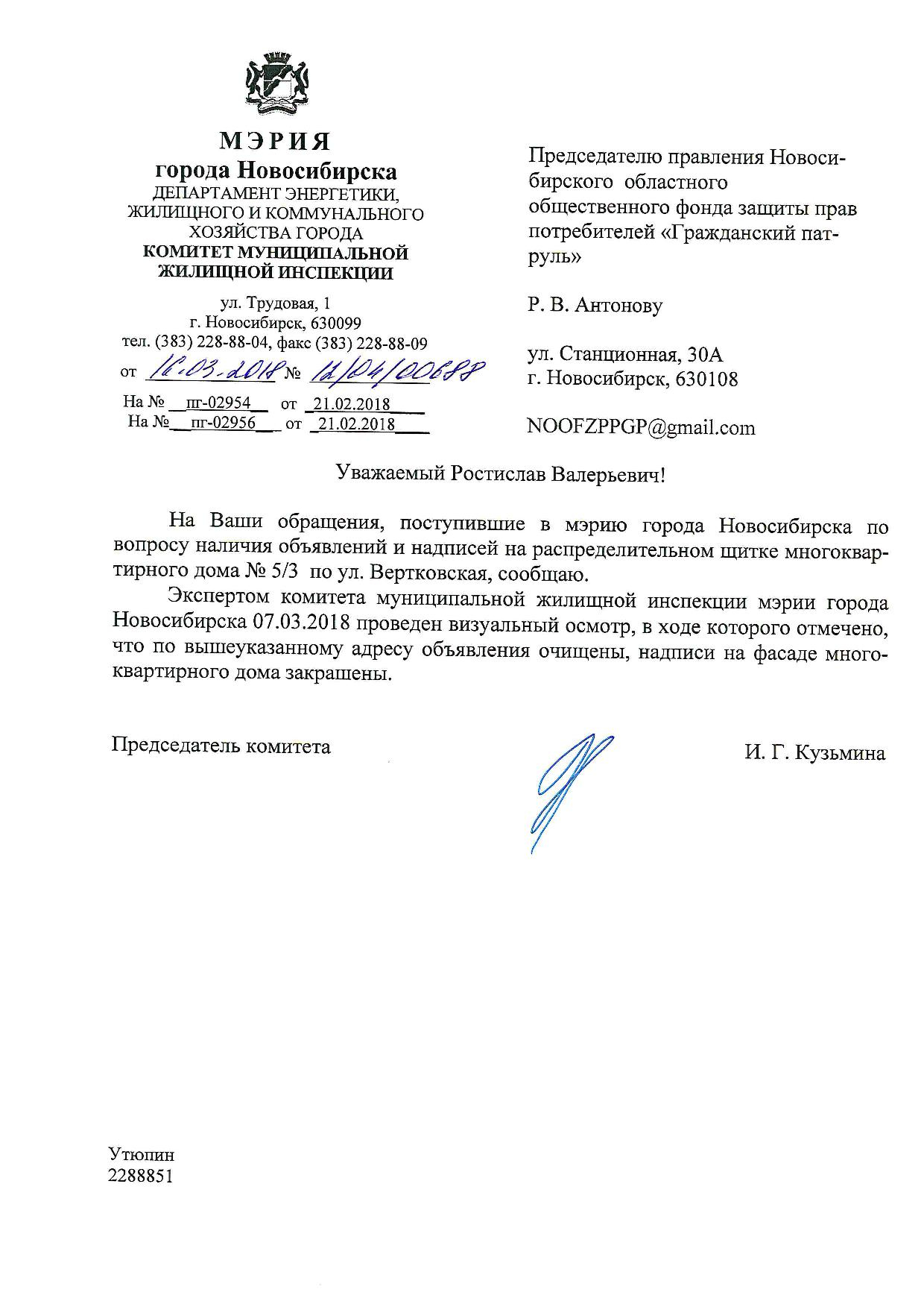 Номер жалобы:30547 Тип жалобы:Иные проблемы ЖКХ Название объекта:Управляющая Компания Город:Новосибирск Адрес:Новосибирск, улица Вертковская, 5/3 Описание жалобы:Комментарий Статус:
