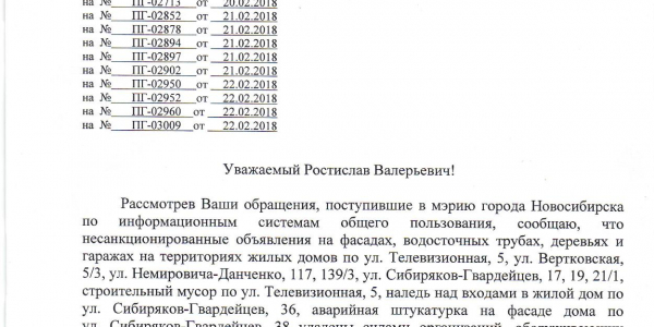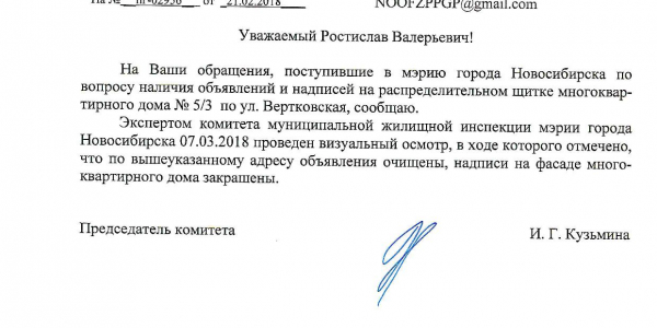 Номер жалобы:30536 Тип жалобы:Иные проблемы ЖКХ Название объекта:Управляющая Компания Город:Новосибирск Адрес:Новосибирск, Телевизионная улица, 3 Описание жалобы:Фасад дома разрисован Статус: