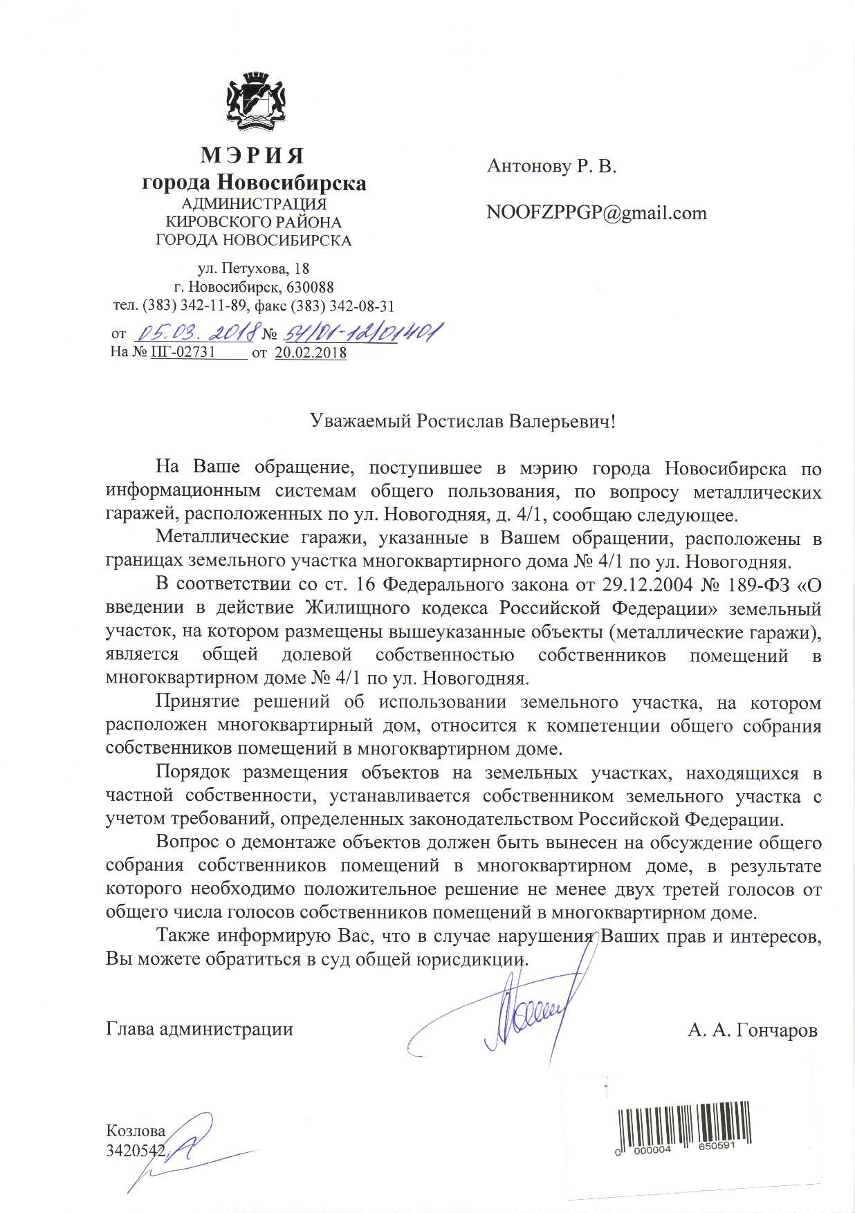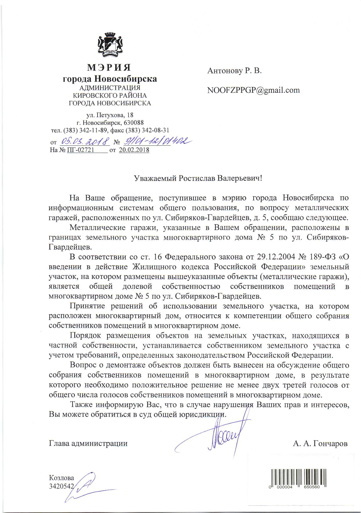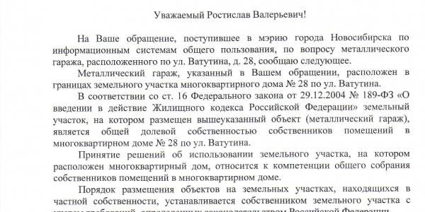 Номер жалобы:30422 Тип жалобы:Иные проблемы ЖКХ Название объекта:Управляющая Компания Город:Новосибирск Адрес:Новосибирск, улица Сибиряков-Гвардейцев, 3 Описание жалобы:гаражи Статус: