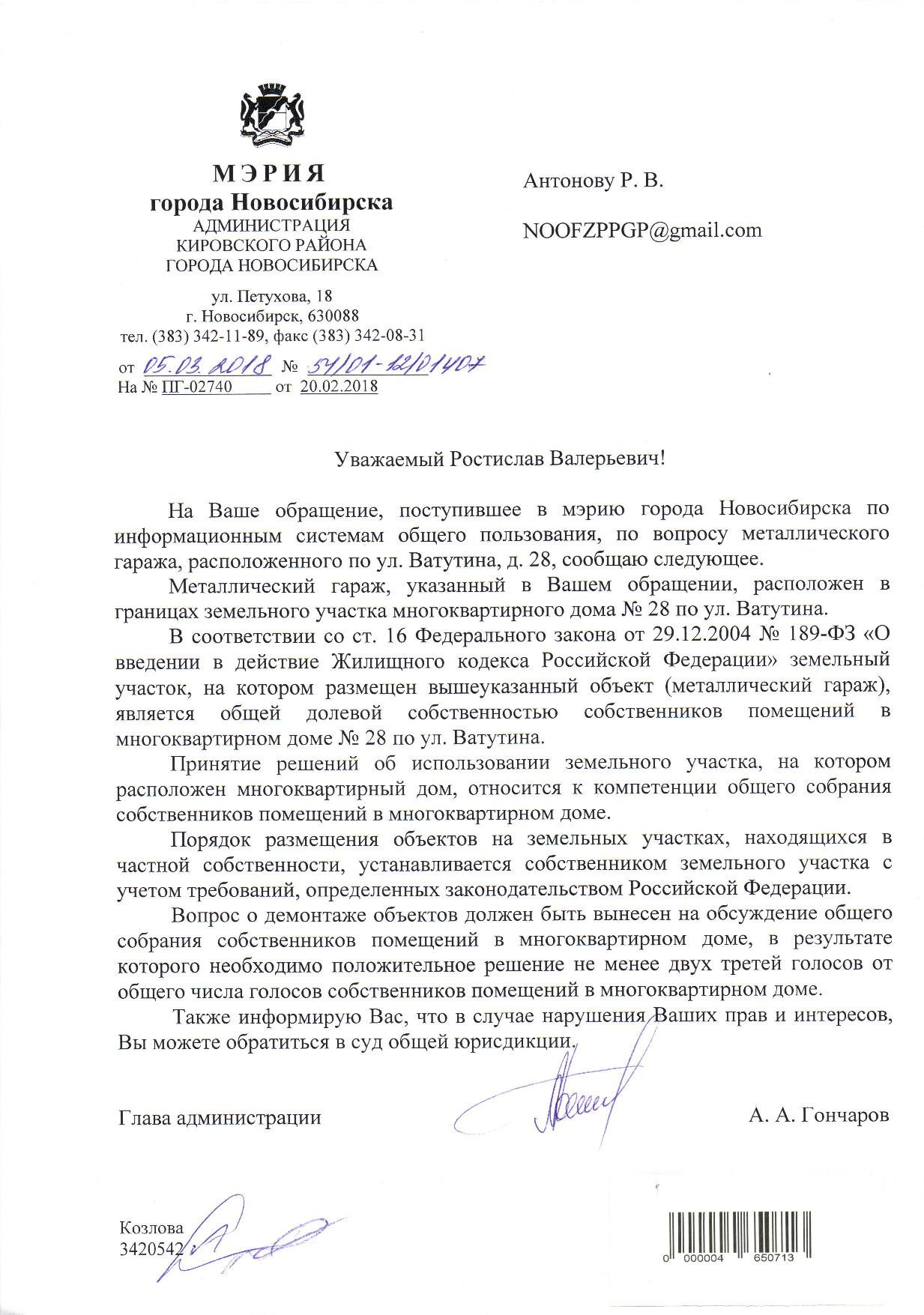 Номер жалобы:30419 Тип жалобы:Иные проблемы ЖКХ Название объекта:Управляющая Компания Город:Новосибирск Адрес:Новосибирск, улица Сибиряков-Гвардейцев, 5 Описание жалобы:Гаражи Статус: