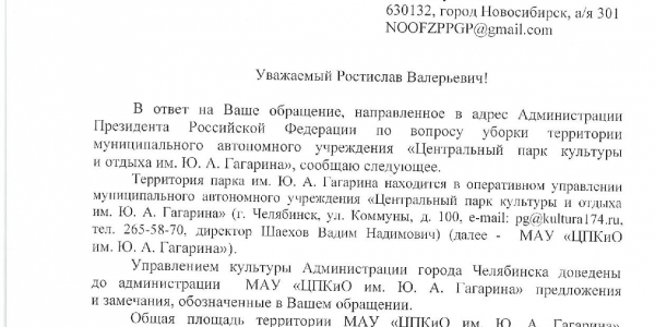 Номер жалобы:68652 Тип жалобы:Прочее Название объекта: Регион:Челябинская область Город:Челябинск Адрес:Челябинск, Центральный район Описание жалобы:Парк гагрина сплошная мусорка? Прчпму не убирается территория? Статус: