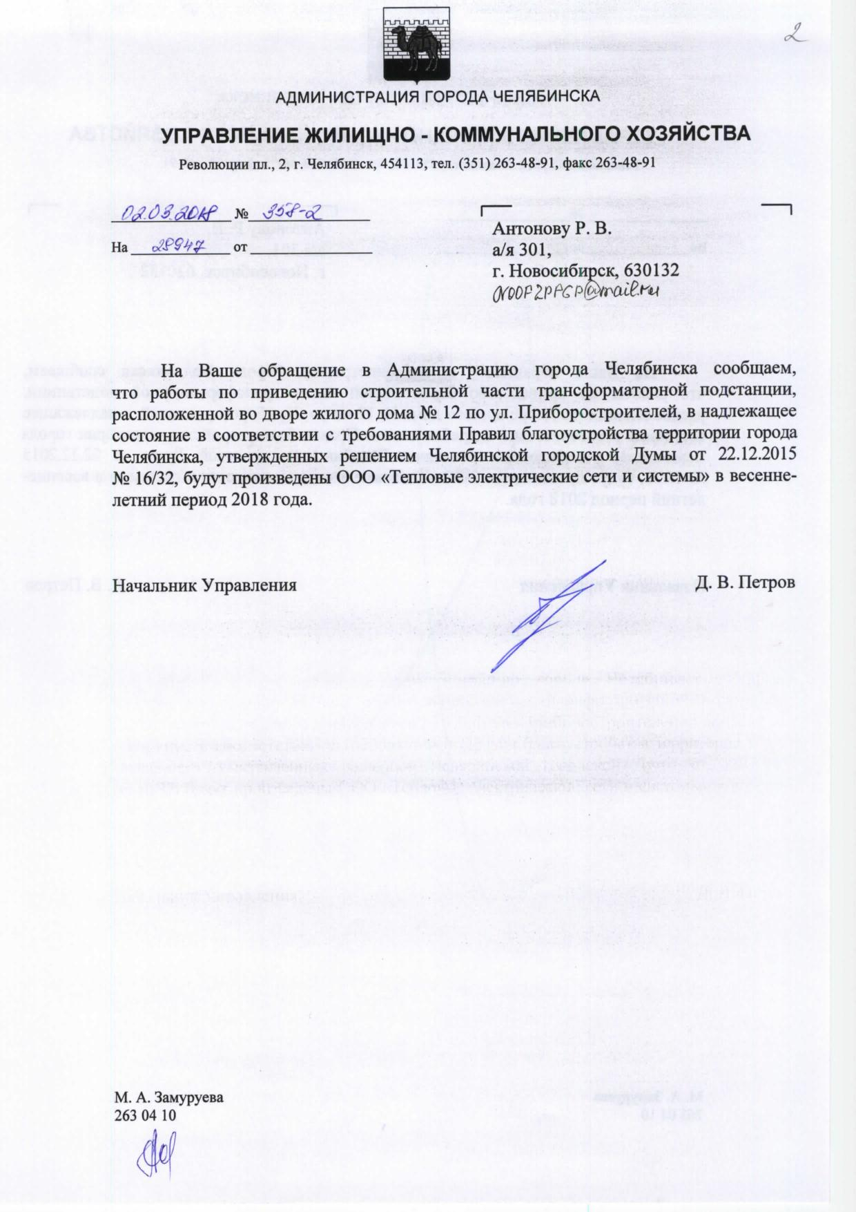 Номер жалобы:29947 Тип жалобы:Иные проблемы ЖКХ Название объекта:Администрация Металлургического Района Регион:Челябинская область Город:Челябинск Адрес:Приборостроителей 12 Описание жалобы:Во дворе на Приборостроителей 12 требуется покрасить трансформаторное помещение,оно расписано граффити и старая краска давно выцвела Статус: