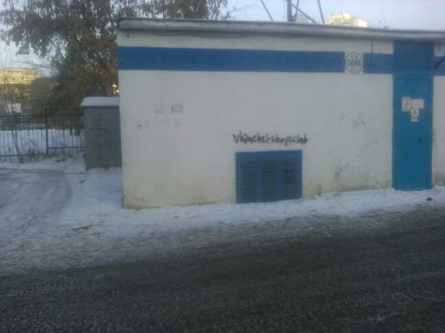 Реклама в виде граффити находиться на фасаде дома ул. Руставели 2 (в нескольких местах) , а также на трансформаторном сооружении находящимся за домом. Статус: