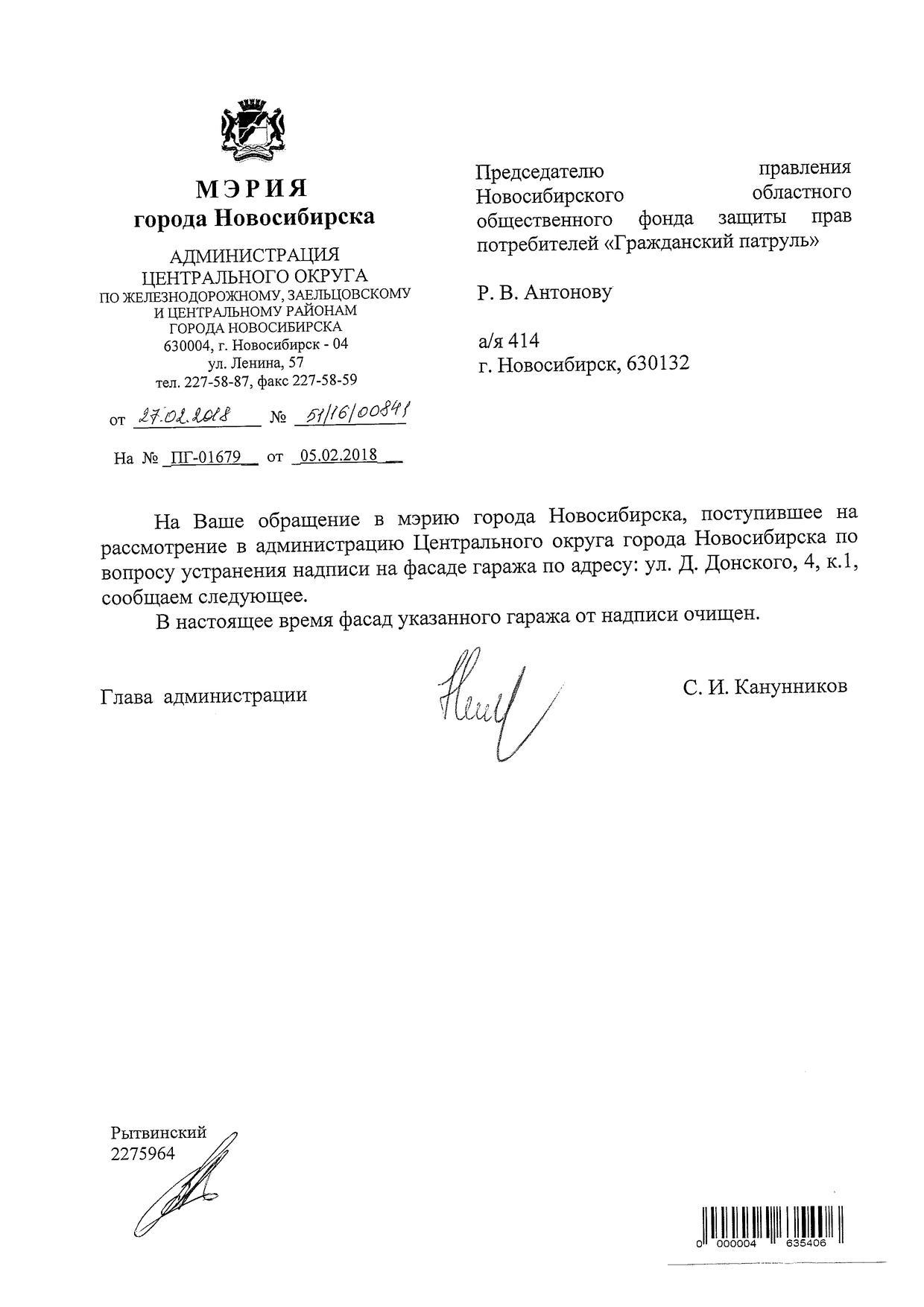 Номер жалобы:29476 Тип жалобы:Иные проблемы ЖКХ Название объекта:Управляющая Компания Регион:Новосибирская область Город:Новосибирск Адрес:ул. Дмитрия Донского, 23 Описание жалобы:Надписи на хозяйственном корпусе Статус: