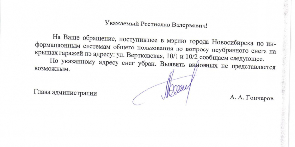 Номер жалобы:29380 Тип жалобы:Иные проблемы ЖКХ Название объекта:Управляющая Компания Город:Новосибирск Адрес:Новосибирск, улица Вертковская, 12/2 Описание жалобы:Гаражи Статус:
