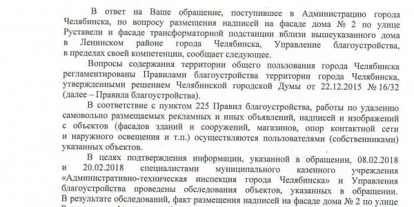 Номер жалобы:29422 Тип жалобы:Иные проблемы ЖКХ Название объекта:Администрация Ленинского района г. Челябинск. Регион:Челябинская область Город:Челябинск Адрес:ул. Руставели, 2 Описание жалобы:Незаконная реклама, пропаганда наркотиков.
