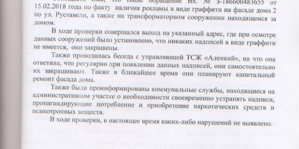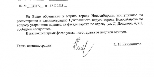 Номер жалобы:29477 Тип жалобы:Иные проблемы ЖКХ Название объекта:Администрация Регион:Новосибирская область Город:Новосибирск Адрес:ул. Дачная, 60 Описание жалобы:Дачная 60 корпус 14, надписи на заборе Статус: