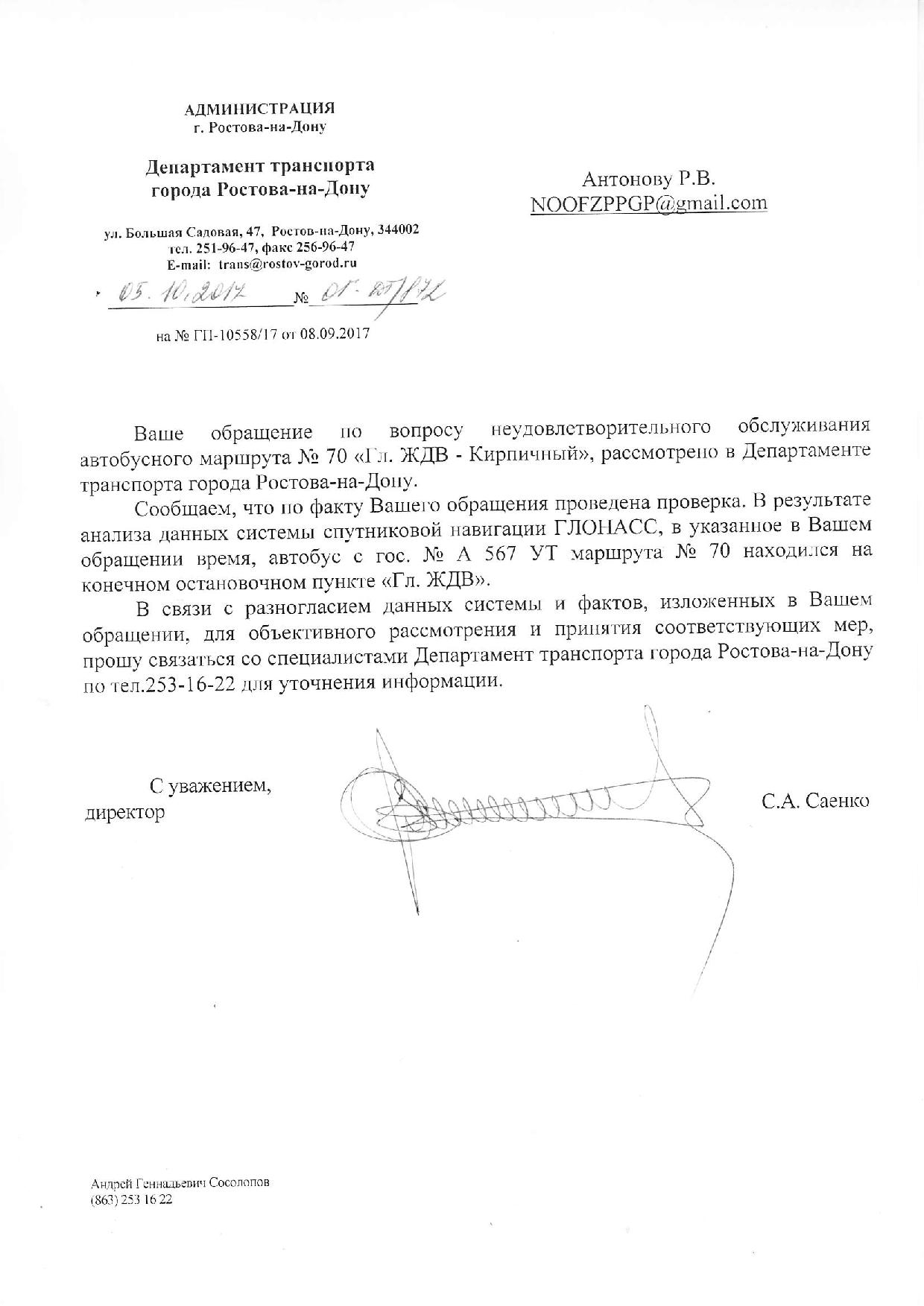 Номер жалобы:24496 Тип жалобы:Прочее Название объекта:Департамент транспорта г.Ростов-на-Дону Город:Ростов-на-Дону Адрес:Б. Садовая Описание жалобы:28.08.2017 07:49:41 Автобус № 70