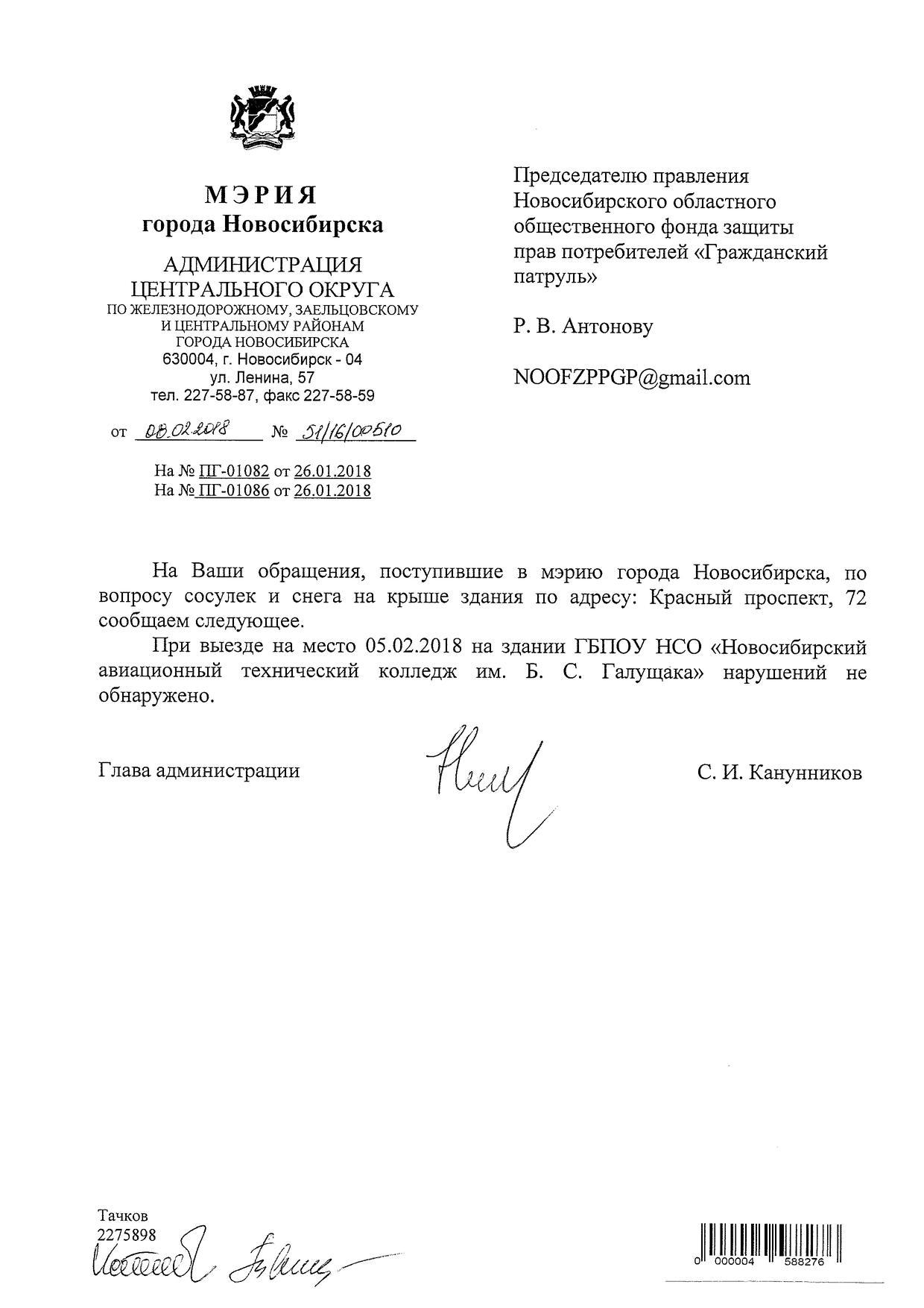 Номер жалобы:29103 Тип жалобы:Иные проблемы ЖКХ Название объекта:Управляющая Компания Регион:Новосибирская область Город:Новосибирск Адрес:Красный пр., 69 Описание жалобы:Снег на крыше Статус:
