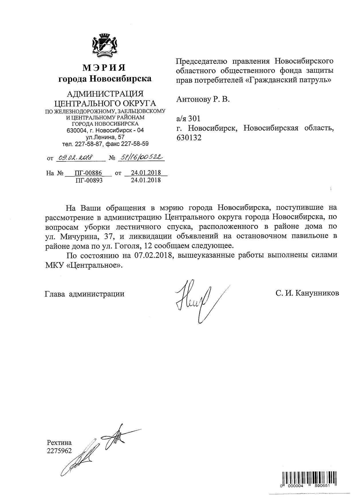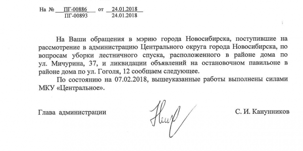 Номер жалобы:28999 Тип жалобы:Иные проблемы ЖКХ Название объекта:Управляющая Компания Регион:Новосибирская область Город:Новосибирск Адрес:ул. Гоголя, 17 Описание жалобы:Объявления в неположенном месте Статус: