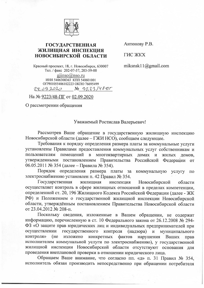Номер жалобы:68471 Тип жалобы:Прочее Название объекта: Регион:Новосибирская область Город:Барабинск Адрес:Сельская улица, 6 Описание жалобы:Неправильно посчитано потребление электроэнергии. На ул. Сельская д. 6.кв.65. 89833199479 Статус: