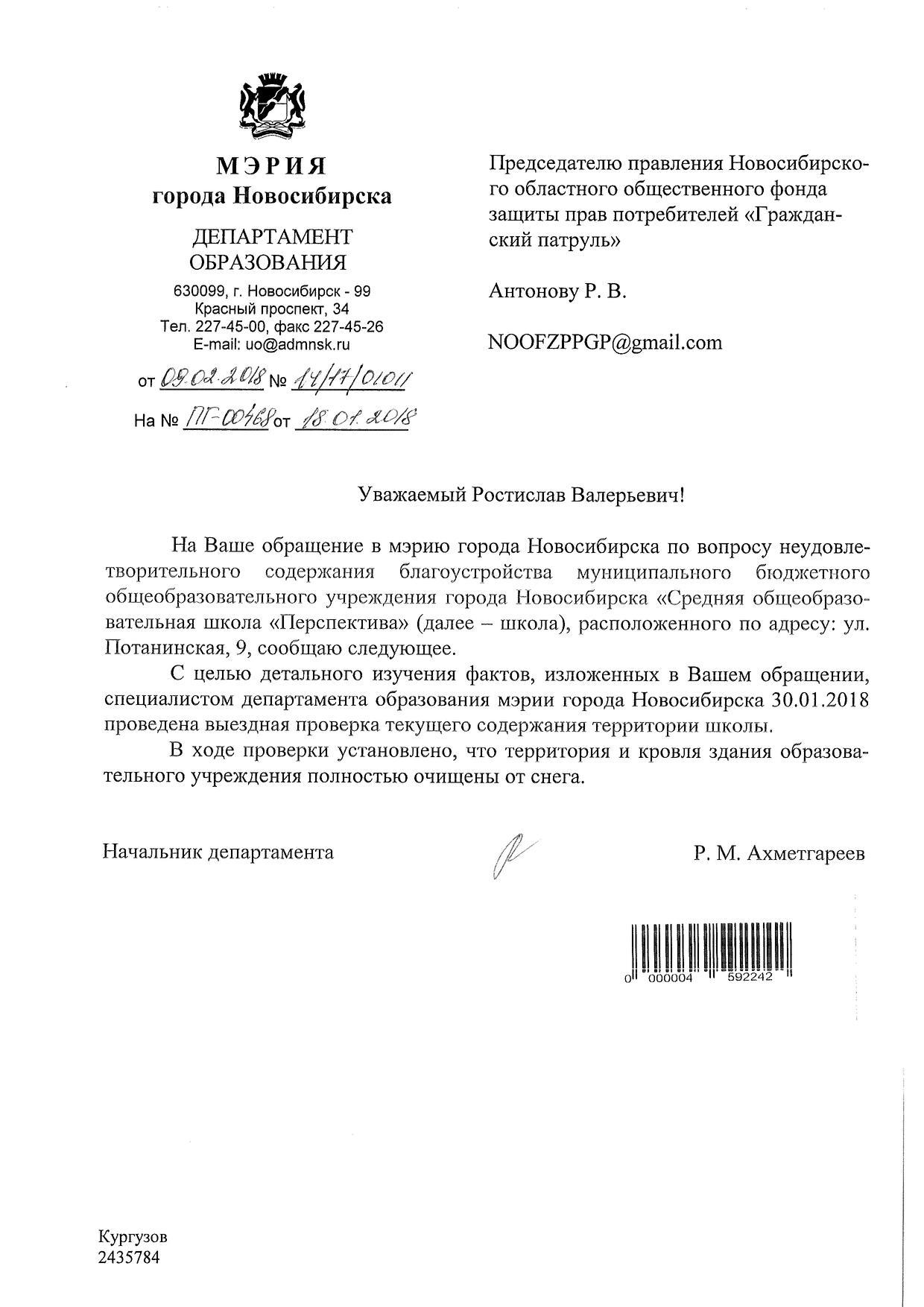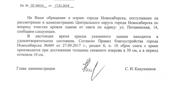 Номер жалобы:28783 Тип жалобы:Иные проблемы ЖКХ Название объекта:Администрация Регион:Новосибирская область Город:Новосибирск Адрес:Потанинская ул., 9 Описание жалобы:Снег на крыше Статус: