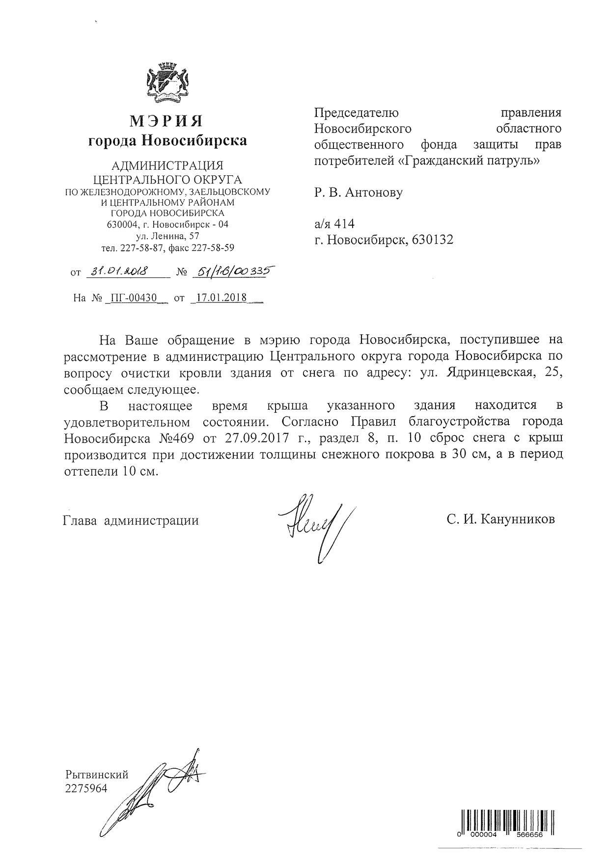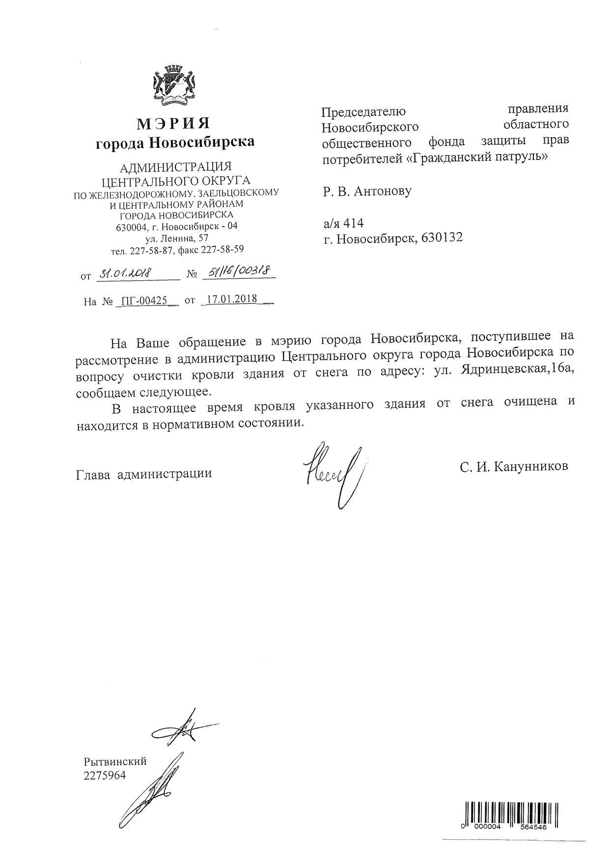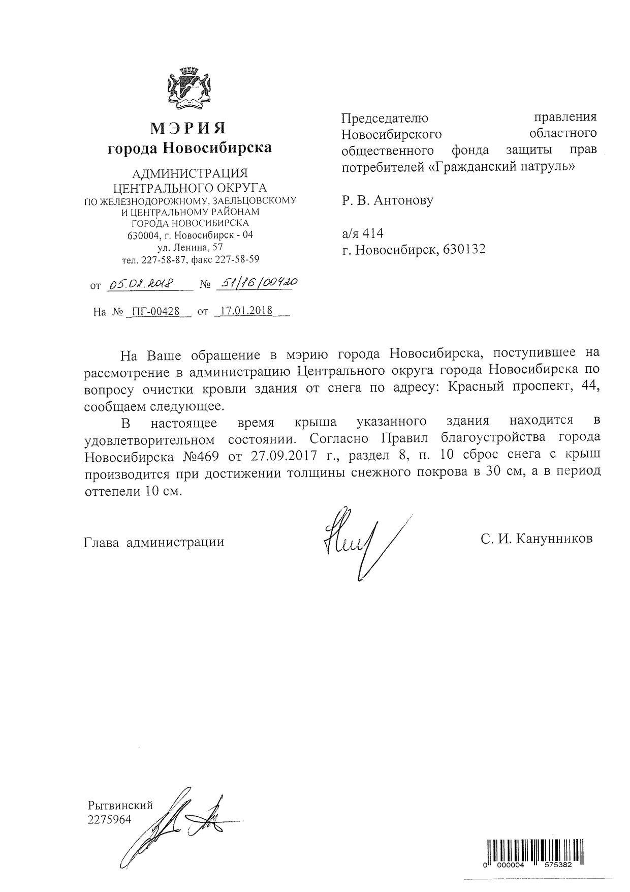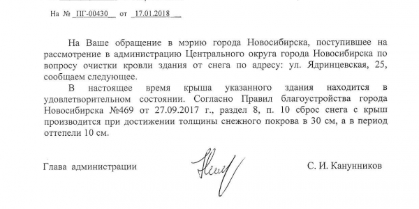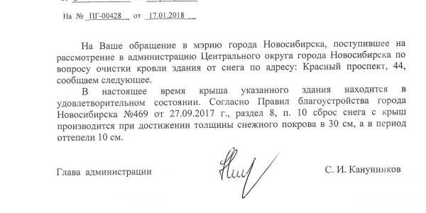 Номер жалобы:28769 Тип жалобы:Иные проблемы ЖКХ Название объекта:Управляющая Компания Регион:Новосибирская область Город:Новосибирск Адрес:Красный пр., 44/17 Описание жалобы:Красный проспект 44 снег на крыше Статус: