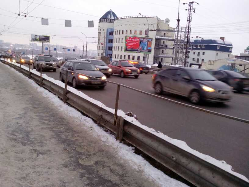 1. Проход над путепроводом не ограждён полностью от дороги, грязь, слякоть от машин летит на пешеходов.