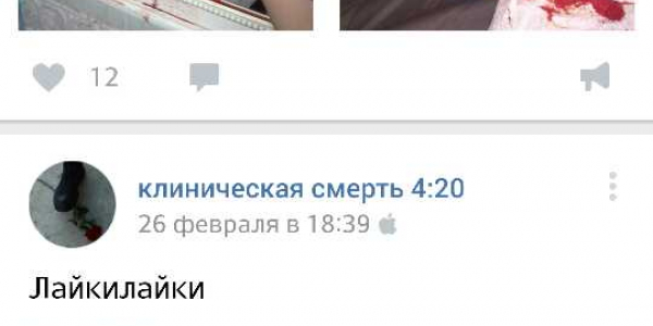 Номер жалобы:15064 Тип жалобы:Прочее Название объекта:Вконтакте Регион:Московская область Город:Ханево Адрес:ул. Речная, 33 Описание жалобы:Суицид http://vk.com/deeeeeeeaaaadадрес неизвестен Статус: