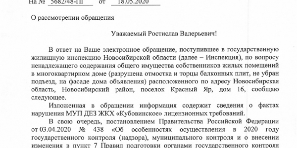 Номер жалобы:66046 Тип жалобы:Иные проблемы ЖКХ Название объекта: Регион:Новосибирская область Город:посёлок Красный Яр Адрес:посёлок Красный Яр, 16 Описание жалобы:разрушена отмостка и торцы балконных плит, не убран подъезд, на доме объявления Статус: