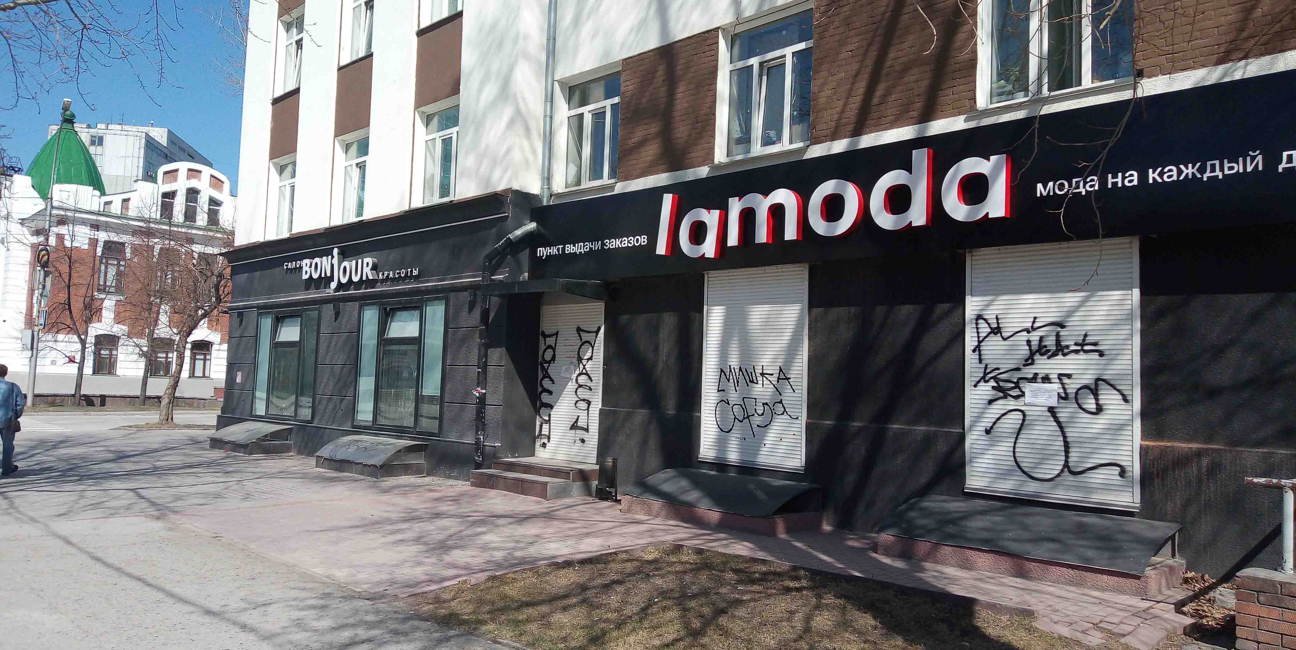 Номер жалобы:65477 Тип жалобы:Ненадлежащее содержание фасада строения, здания, сооружения Название объекта: Регион:Новосибирская область Город:Новосибирск Адрес:улица Революции, 32 Описание жалобы:надписи на жалюзях магазина Lamoda и витражах окон цокольного этажа салона красоты Bongour Статус: