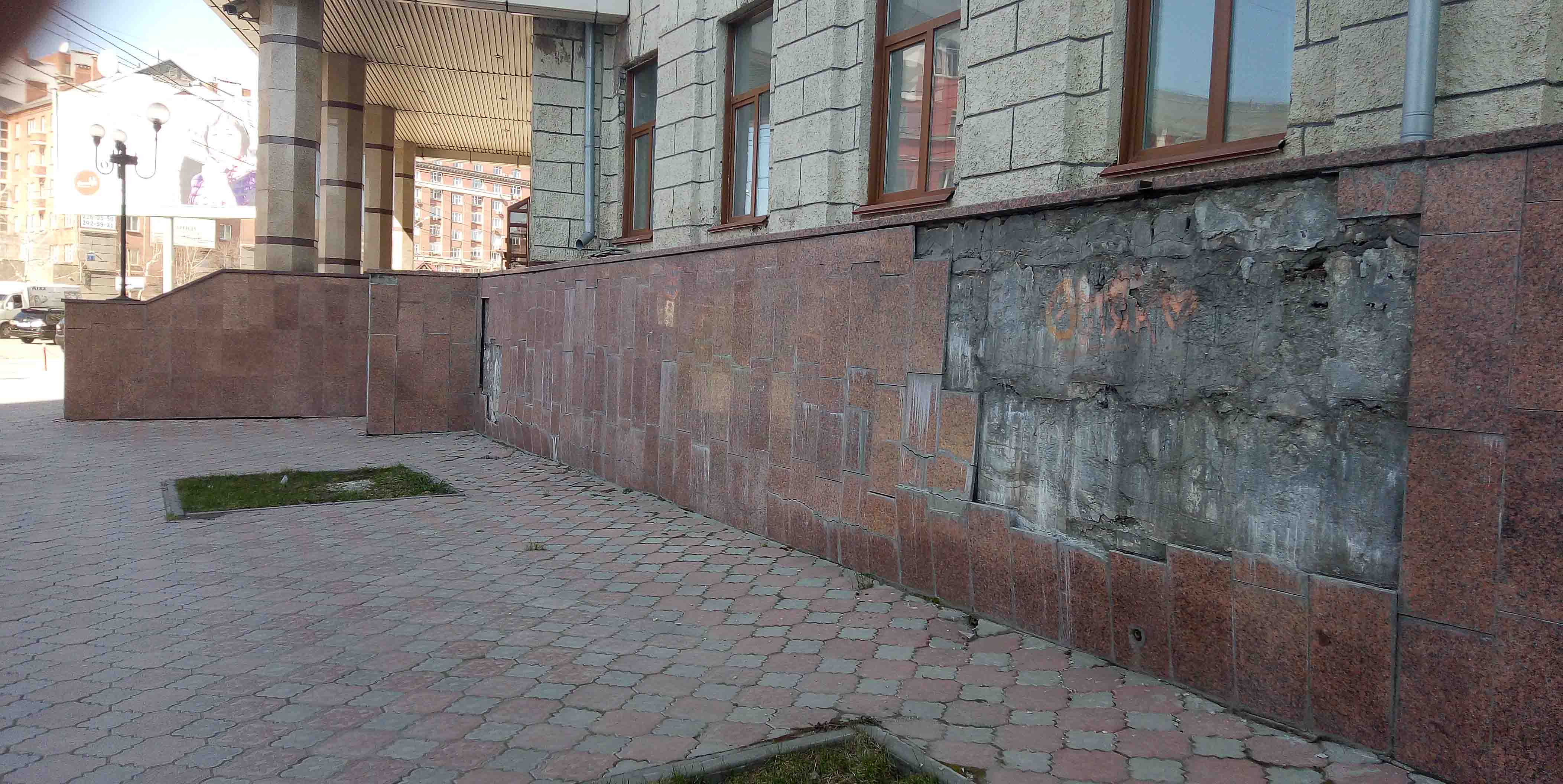 Номер жалобы:65483 Тип жалобы:Ненадлежащее содержание фасада строения, здания, сооружения Название объекта: Регион:Новосибирская область Город:Новосибирск Адрес:Революции 38 Описание жалобы:отсутствует отделочная плитка нижней части здания в районе входа в территориальное управление федерального агенства по управлению государственным имуществом в Новосибирской области. многие из остальных плиток, включая парапет крыльца, держатся на честном слове, готовые отвалиться в любой момент. Статус: