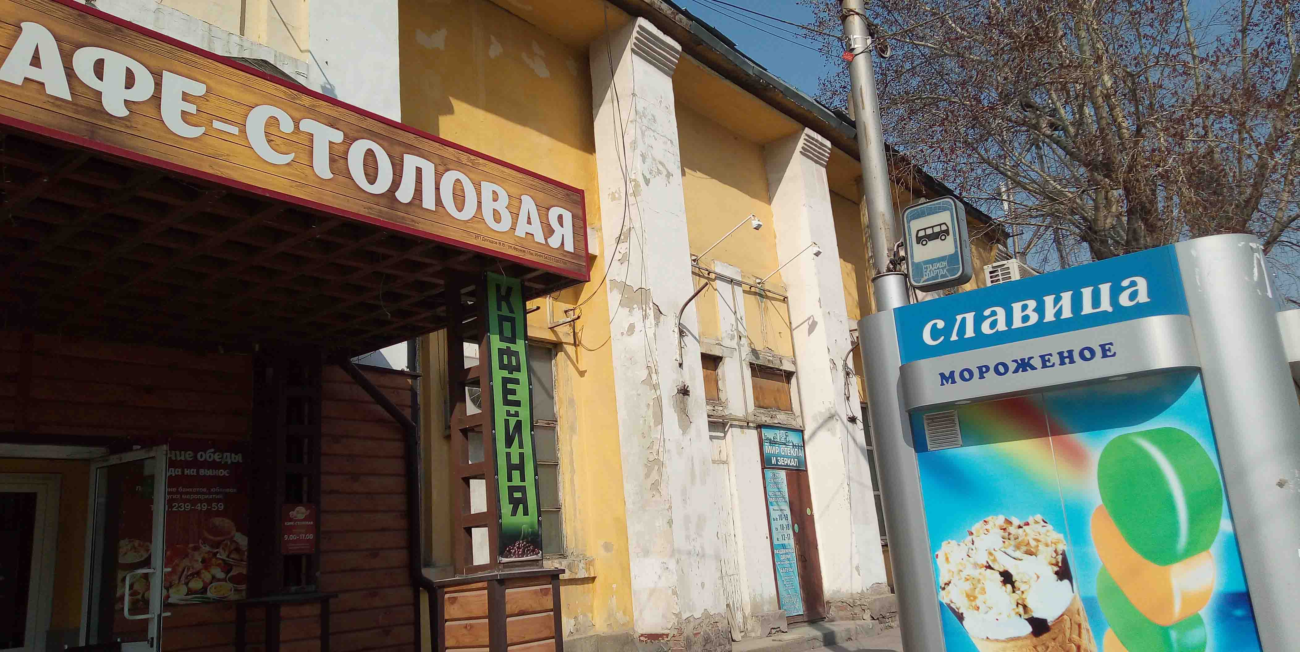 здание расположено перед остановкой транспорта "Стадион Спартак", напротив Центрального парка - излюбленного места отдыха горожан и гостей города. Статус: