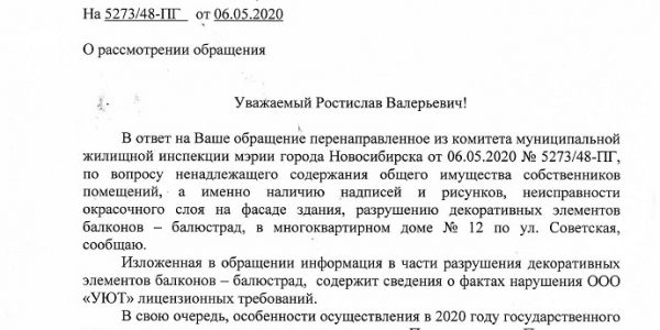 Номер жалобы:65482 Тип жалобы:Ненадлежащее содержание фасада строения, здания, сооружения Название объекта: Регион:Новосибирская область Город:Новосибирск Адрес:Советская, 12 Описание жалобы:надписи и граффити на здании. облазит покраска стен, разрушаются декоративные элементы балконов - балюстрады. Статус: