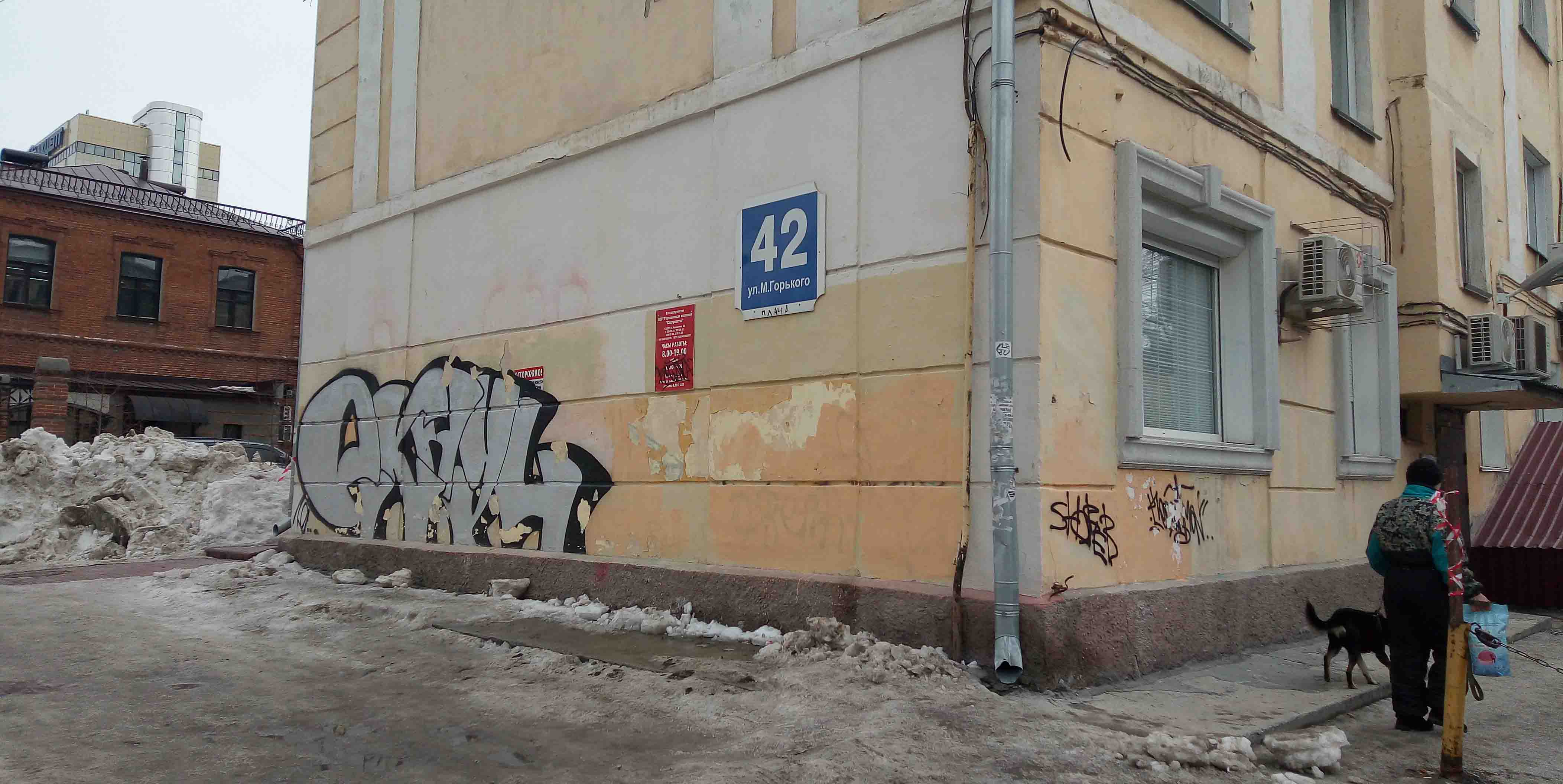 Номер жалобы:65226 Тип жалобы:Ненадлежащее содержание фасада строения, здания, сооружения Название объекта: Регион:Новосибирская область Город:Новосибирск Адрес:Максима Горького, 42 Описание жалобы:надписи и граффити на стенах. многочисленные и серьезные разрушения фасада дома вокруг подъездов и в верхней части дома.