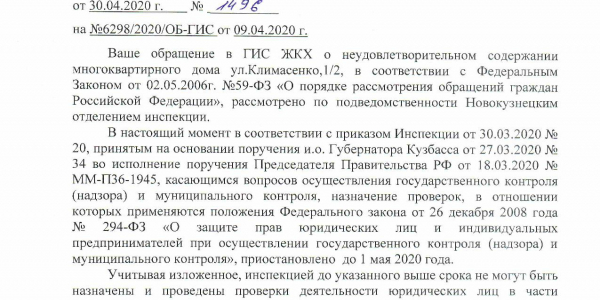 Номер жалобы:65254 Тип жалобы:Иные проблемы ЖКХ Название объекта: Регион:Кемеровская область Город:Новокузнецк Адрес:улица Климасенко, 1/2 Описание жалобы:Здравствуйте, Город Новокузнецк, ул. КЛИМАСЕНКО 1/2 в подъездах нет уборки, стены обвалены, ремонт не придвидится, во дворах мусор, старший дома бездействует, а в квитанциях стоит на оплату совета дома, содержания жилья оплату берут, но не чего не делают Статус: