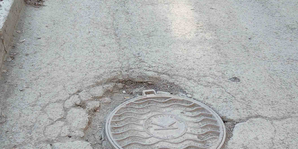 разрушение асфальта вокруг люка колодца на внутридворовом проезде